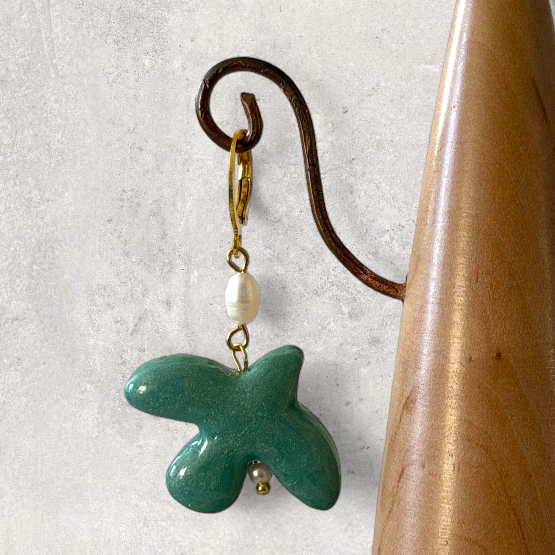 Matériaux : argile polymère, résine UV, perle d'eau douce synthétique