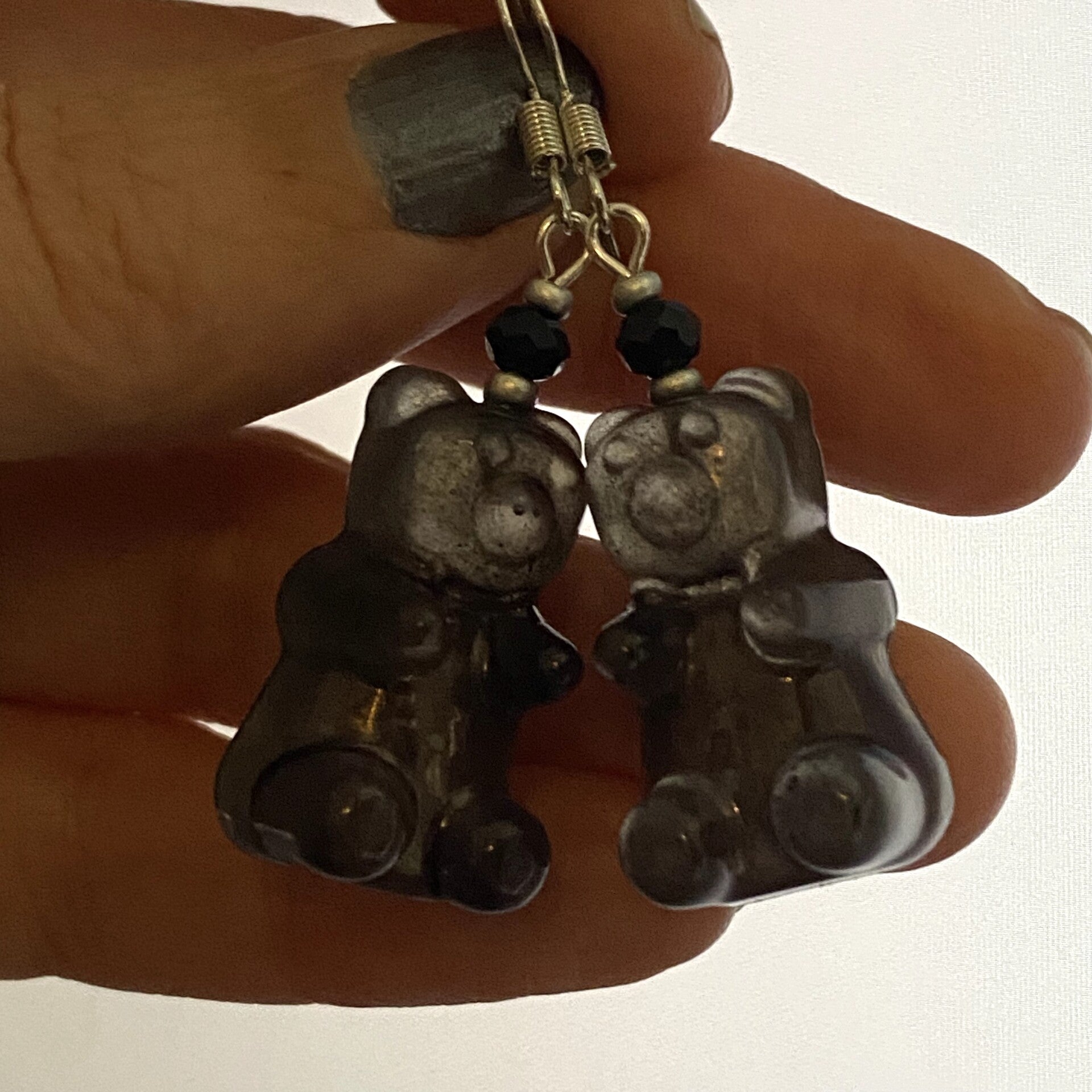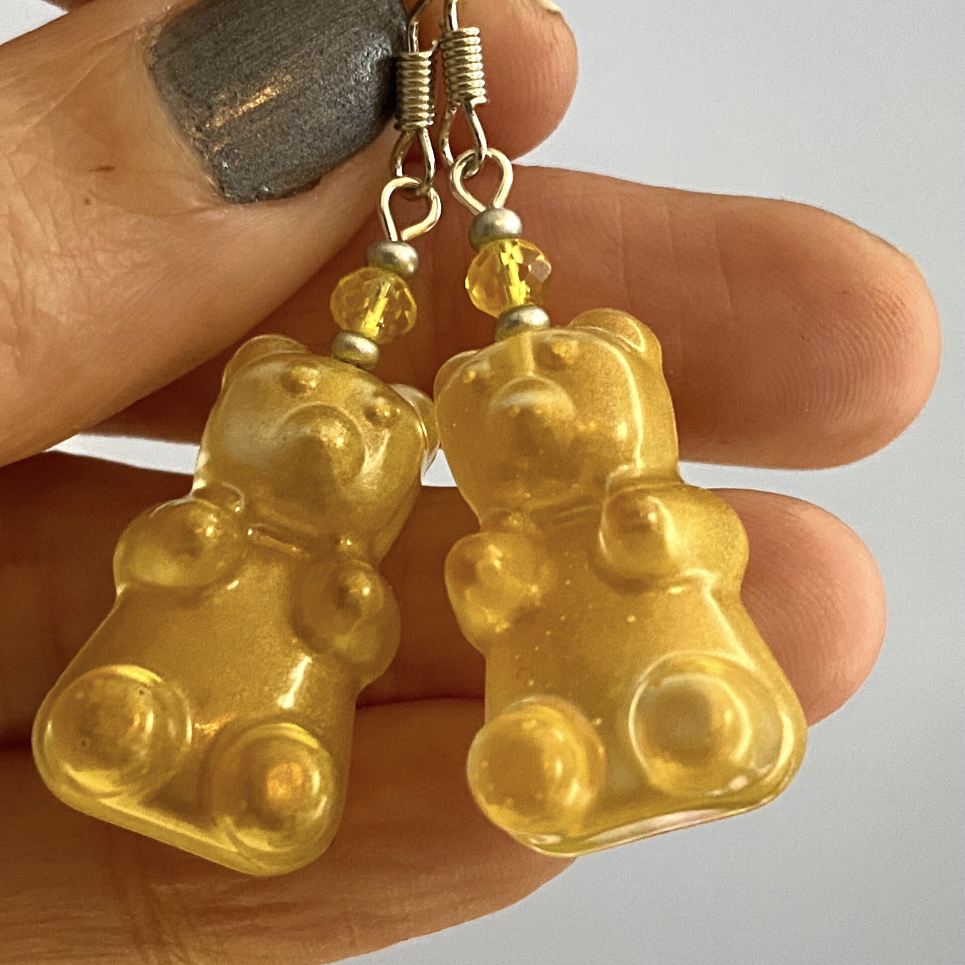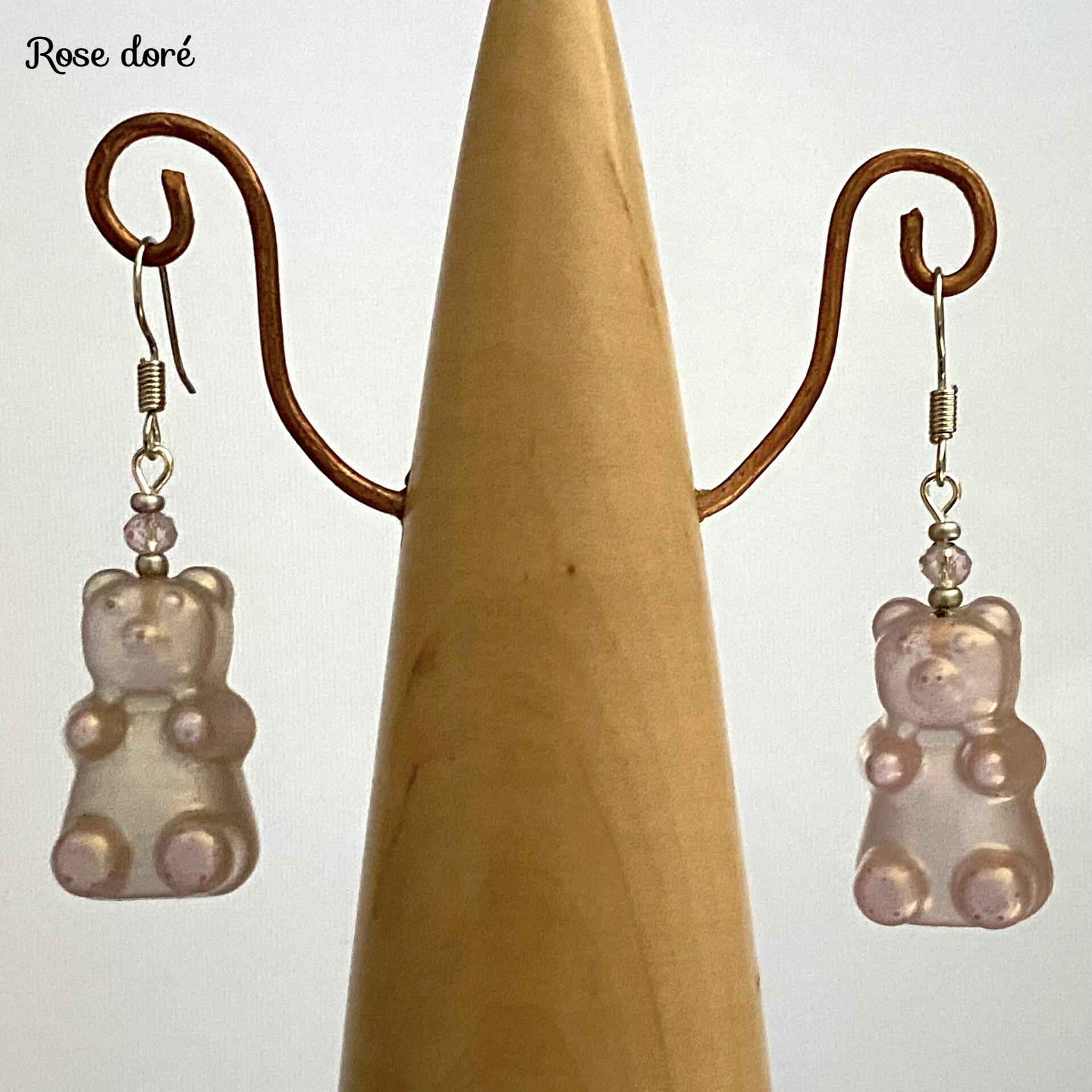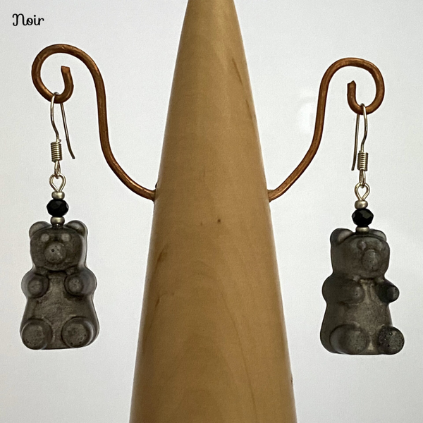 Ces jolies boucles d'oreilles ont été conçues par coulage de résine dans un moule en forme de nounours.