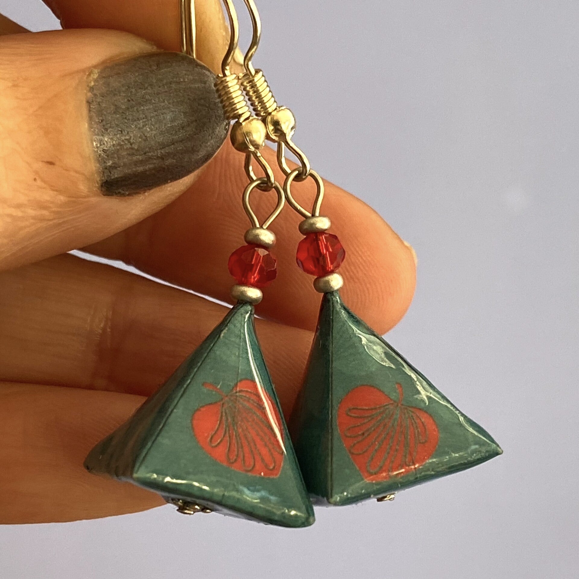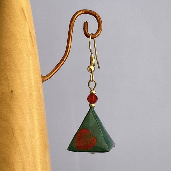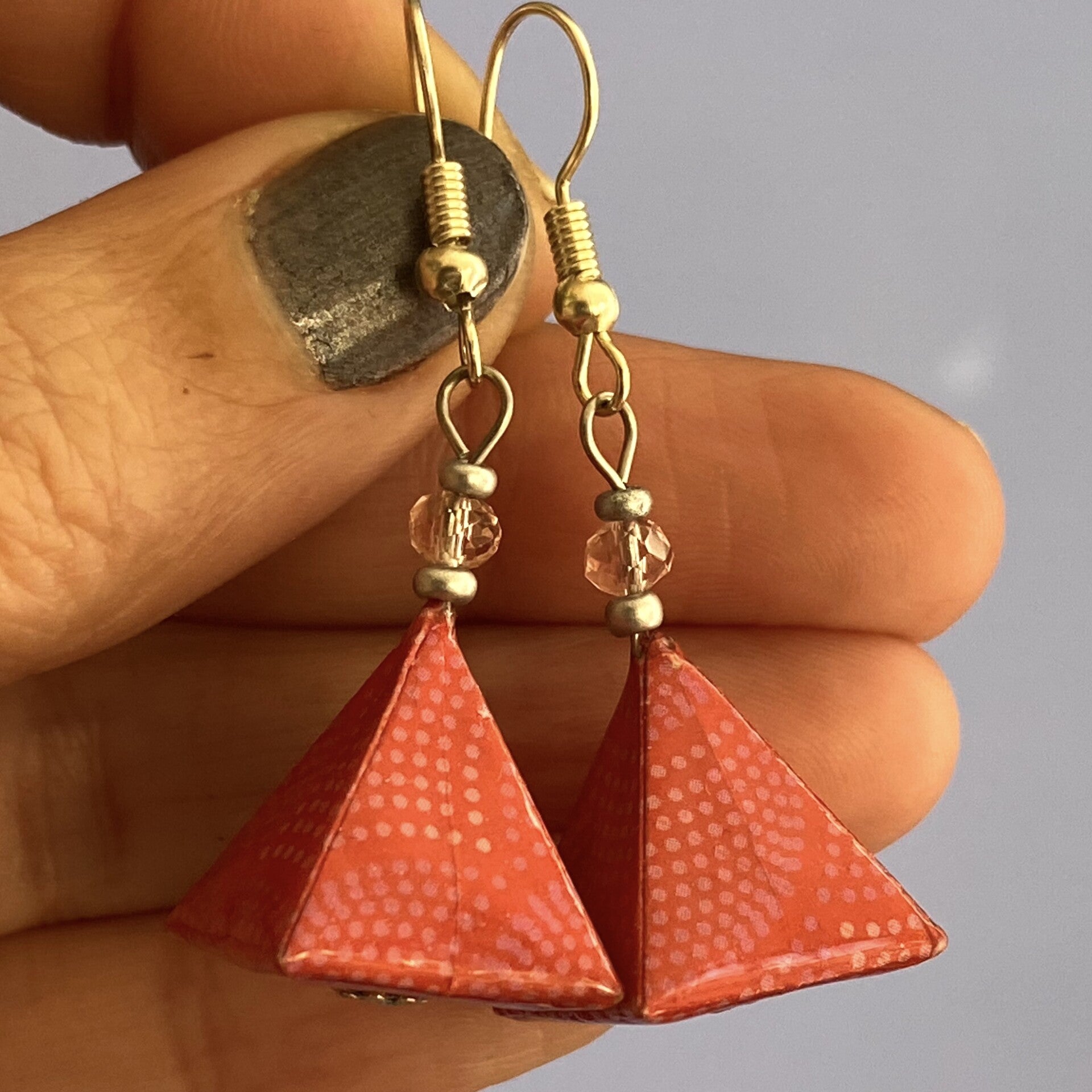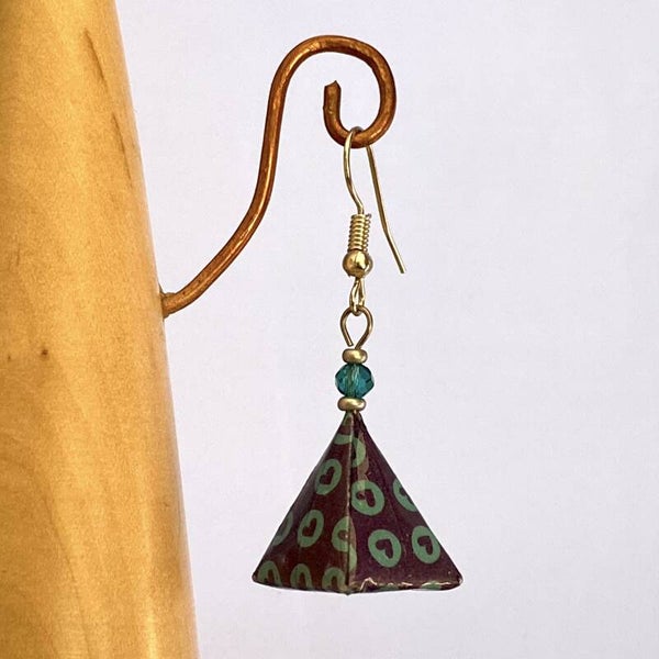 Ces jolies boucles d'oreilles ont été conçues en utilisant la technique de pliage Origami du modèle "Feuille".